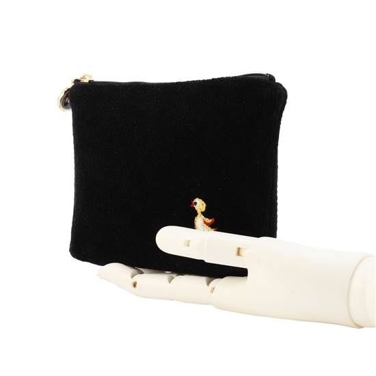 シンプルな黒地に『ハイジ』のアヒルを刺しゅうしたポーチです。毎日の必携品を入れて、コンパクトにまとめるのにぴったりなサイズ感。リップクリームにミラー、常備薬などの小物類を大人っぽく持ち運びいただけます。ハイジ柄のハンカチと組み合わせて、ちょっとしたギフトにもおすすめです。