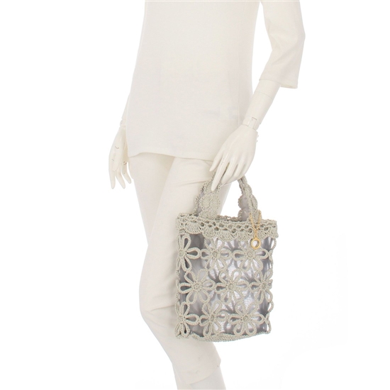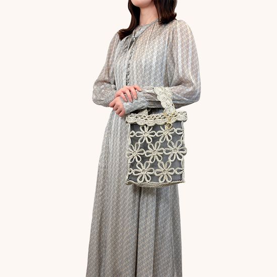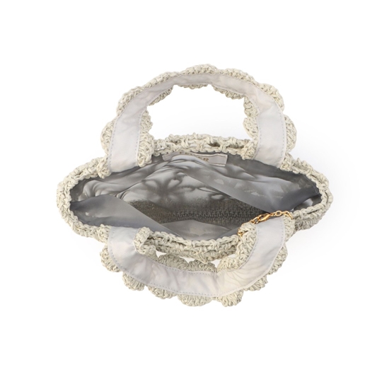 ペーパー素材で編み上げた『ユニ』のフラワーペーパーバッグです。フリルを意識した開口部のスカラップデザインや持ち手が、ナチュラルながらもフェミニンな雰囲気を演出します。キラリと輝くリングチャームが上品できれいめなワンポイント。幅広いスタイリングと相性が良く、持つだけでコーディネートが華やぐアイテムです。