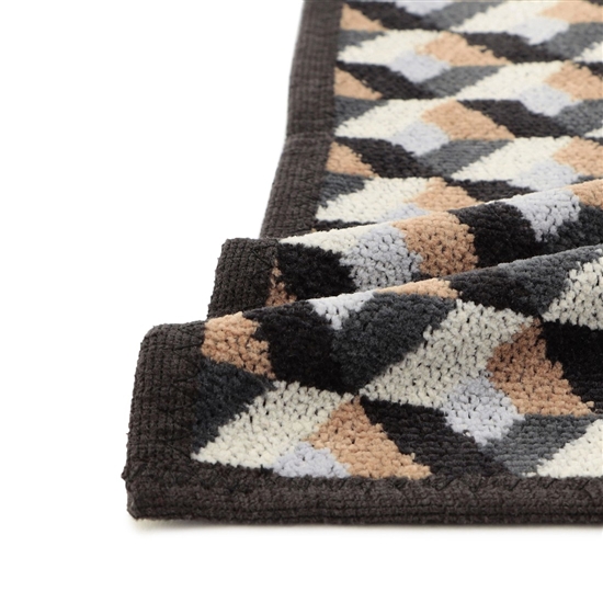 花柄を図形に変形させて概日リズムを表現した『サーカディアンフラワーキューブ』のゲストタオル。チャコールグレーを基調とした色合いが、スタイリッシュな雰囲気を演出します。インテリアとも組み合わせしやすい、シンプルで無駄のないカラーリングも魅力的。キッチンや洗面所などの空間を、さりげなく引き立てる1枚です。