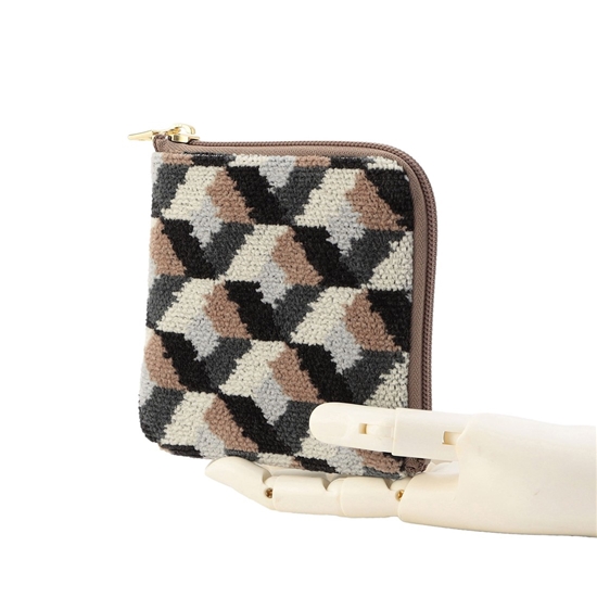 幾何学模様がリズミカルなパターンを刻む『サーカディアンフラワーキューブ』のエチケットポーチ。モダンなカラーリングにすることで、ユニセックスにお使いいただける柄に。大きく開いて中身を出し入れしやすいL字ファスナーもポイント。小物や衛生用品をまとめて持ち運ぶときに重宝する、毎日持ち歩きたくなるようなアイテムです。