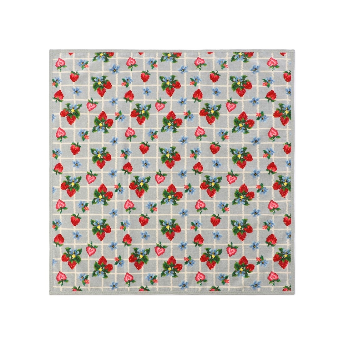 スウィートな雰囲気に気分が上がる『ストロベリーフィールドプティ』のプティバスです。ハート型のイチゴに可憐な小花、格子模様と愛らしい要素をたっぷりと取り入れた柄が魅力的。ベビーのおくるみとしてはもちろんのこと、親子兼用のブランケットとしてもお使いいただけます。結婚祝いや出産祝いなどのお祝い事のギフトにもおすすめしたい1枚です。