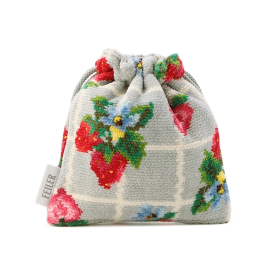 手のひらに乗るほどのコンパクトサイズで、普段使いしやすい『ストロベリーフィールドプティ』の巾着です。ベースカラーをやわらかな雰囲気が漂うグレーにすることで、愛らしくて人気な柄に上品さをプラスしました。バッグの中で探しがちな鍵やイヤホンといった小物類のほか、サプリやちょっとしたお菓子入れにぴったり。使い勝手が良く、ギフトにもおすすめしたい一品です。
