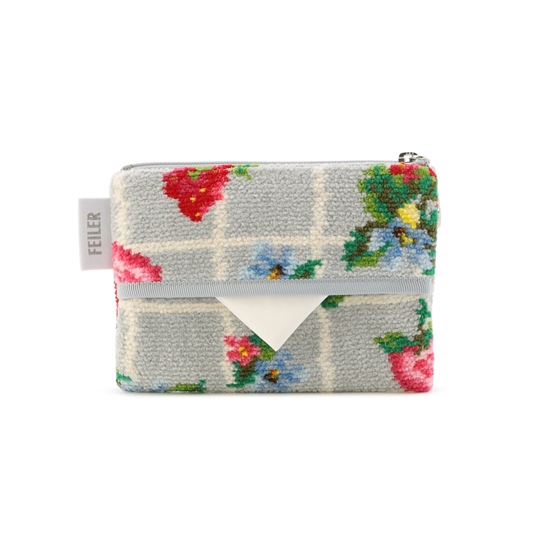 『ストロベリーフィールドプティ』のティッシュポーチです。ベースカラーをやわらかな雰囲気が漂うグレーにすることで、愛らしくて人気な柄に上品さをプラスしました。ポーチ機能付きなので、除菌グッズや目薬、常備薬などを持ち運ぶのにも重宝します。オンオフ問わず、デイリーユースにおすすめのアイテムです。