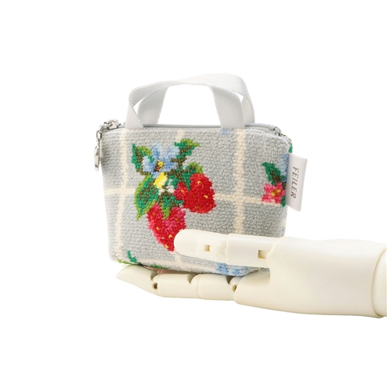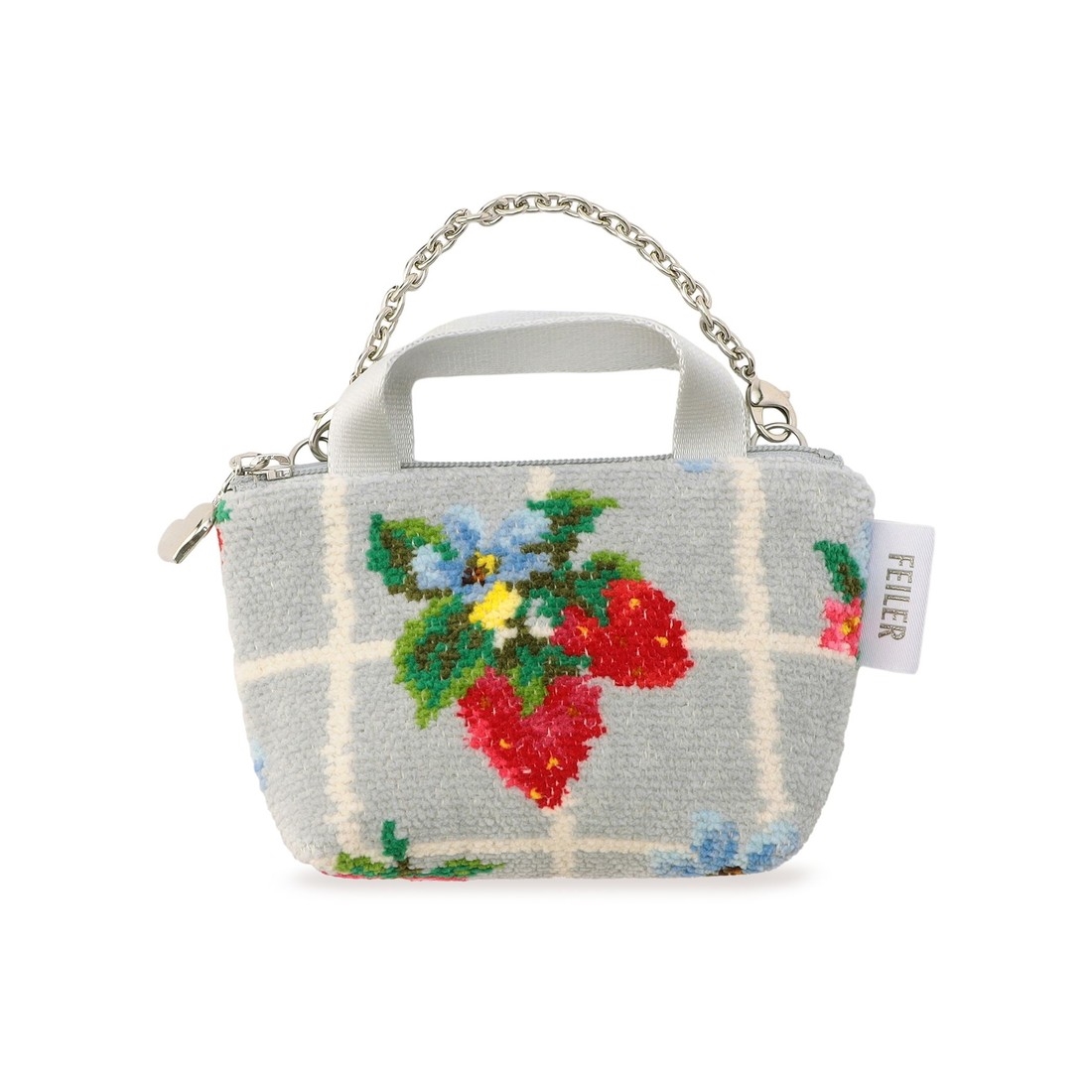 小さなトートバッグを模した『ストロベリーフィールドプティ』のチャームポーチです。ベースカラーをやわらかな雰囲気が漂うグレーにすることで、愛らしくて人気な柄に上品さをプラスしました。取り外し可能なチェーンが付いているので、アクセサリー感覚でお使いいただけます。プレゼントに添えるプチギフトにもおすすめしたいアイテムです。