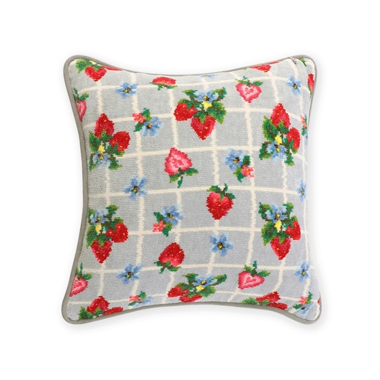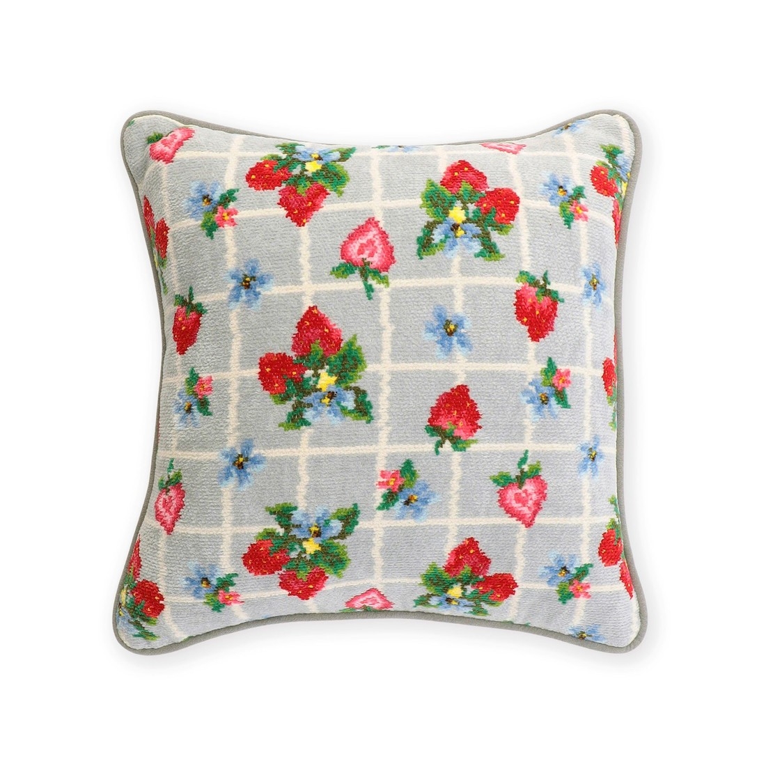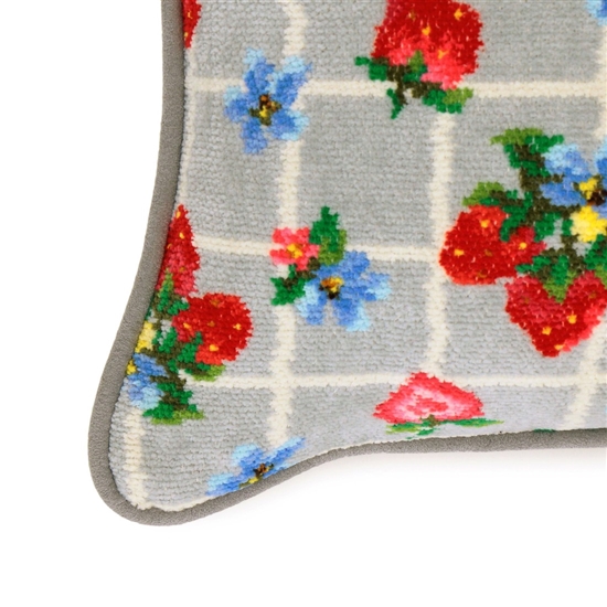 ご自宅でのくつろぎの時間を快適に彩る『ストロベリーフィールドプティ』のクッション。ベースカラーをやわらかな雰囲気が漂うグレーにすることで、愛らしくて人気な柄に上品さをプラスしました。背もたれとして姿勢を支えたり、リビングや寝室のアクセントにも活躍する程よい大きさもポイントのひとつ。同柄の横長タイプのクッション(SFP-257245)とそろえていただくと、使い分けができて便利です。