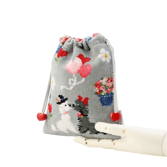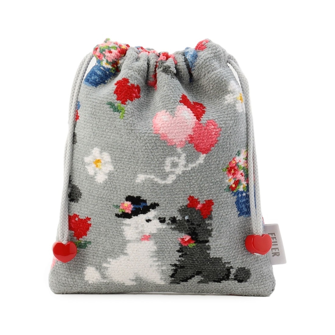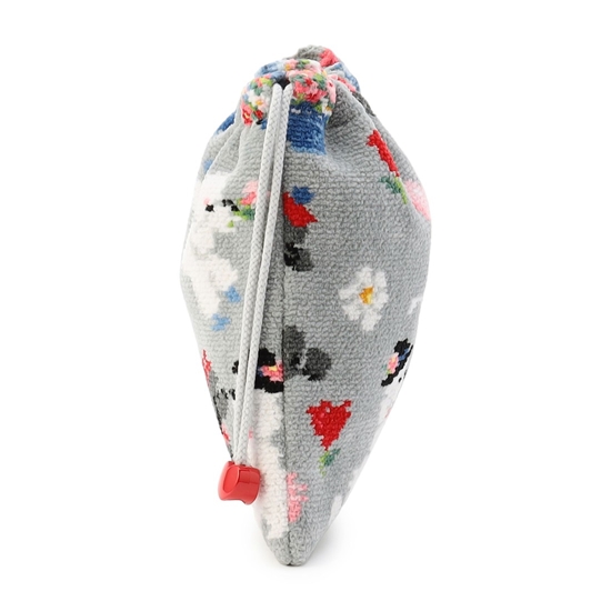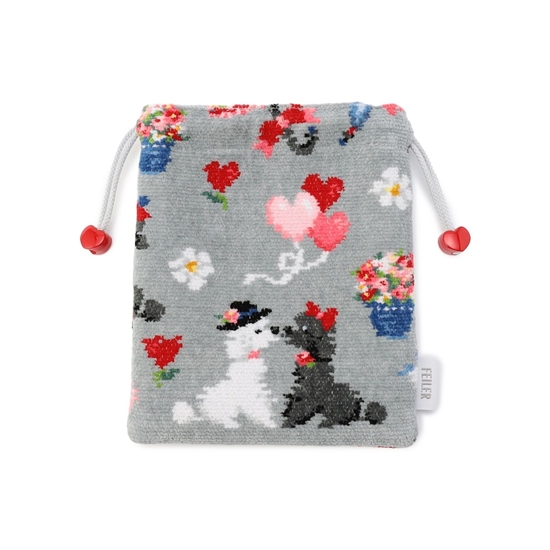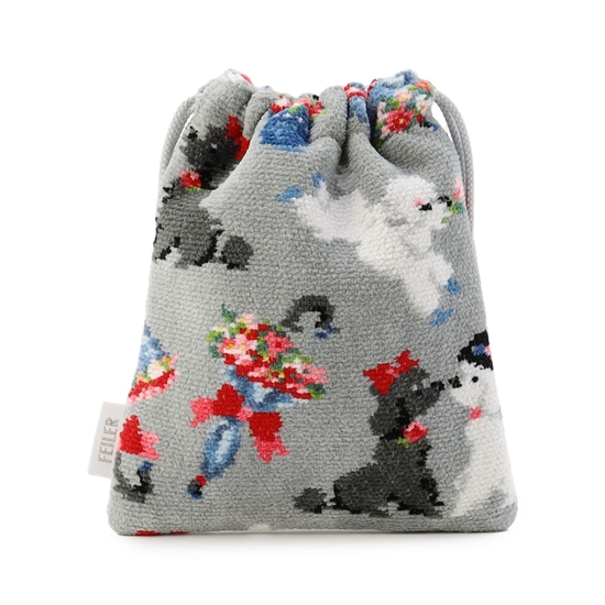 デイリーユースに役立つ『モンプティルル』の巾着です。深さがあるので、小ぶりながら幅広いアイテムの収納に対応できます。バッグに入れてもかさばらないのがうれしいポイント。同柄のポーチと合わせてお使いいただくと、用途別に使い分けできるのでおすすめです。