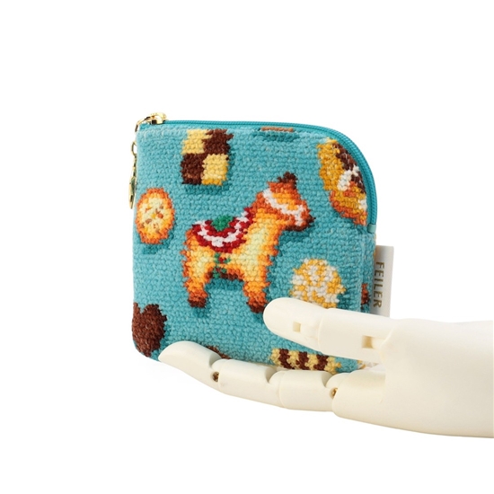 ICカードサイズを収納できる『フィーカタイム』のカードポーチです。おしゃれなテーブルクロスをイメージした、ターコイズブルーをベースカラーにすることで魅力的な表情に仕上げました。ご自宅の鍵などもまとめて入れておけるので、お出かけのときに重宝します。キーポーチや小銭入れなど幅広い用途で活躍する、おすすめのアイテムです。