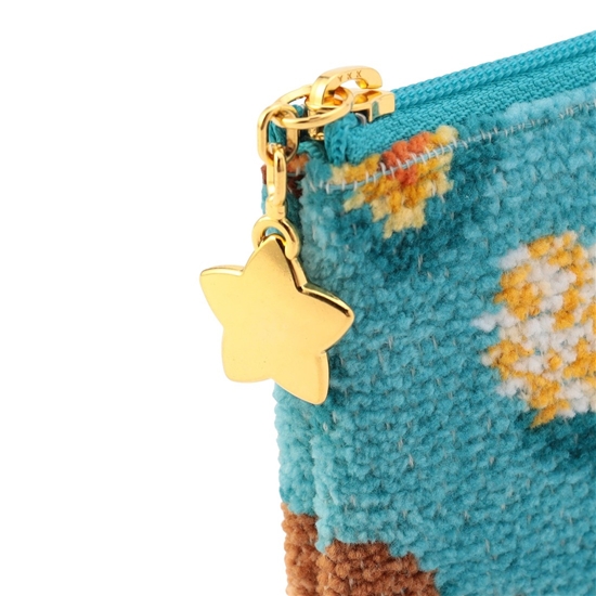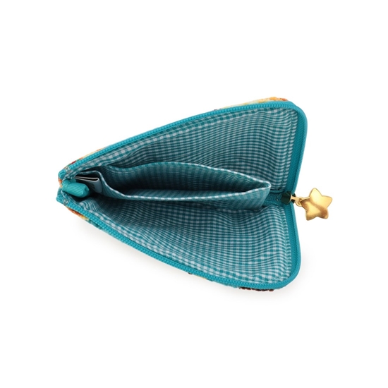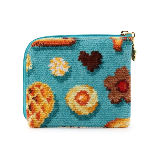 フラットで小さめなバッグにも収納しやすい『フィーカタイム』のミニポーチ。おしゃれなテーブルクロスをイメージした、ターコイズブルーをベースカラーにすることで魅力的な表情に仕上げました。内側中央に備えたポケットは、迷子になりがちな小物やちょっとした現金を入れておくのにぴったり。カード類の収納にはもちろん、ミニウォレットとしても活躍します。