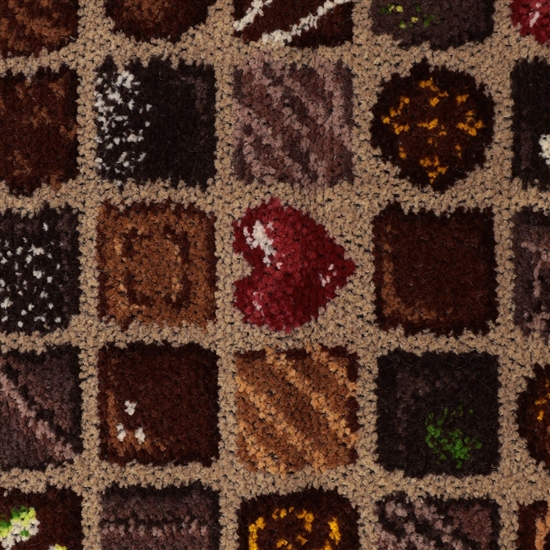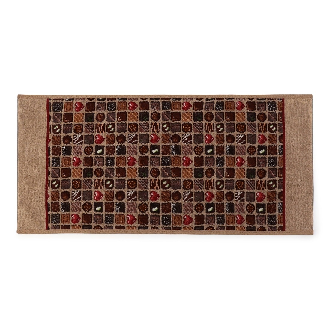 高級感あふれるチョコレートを並べて描いた『コフレドゥショコラ』のハンドタオル。ジュエリーボックスに美しく収納された宝石を彷彿とさせます。両端を無地にすることで、メリハリのあるデザインに仕上げました。使うシーンを選ばず、あらゆる用途で役立つタオルはギフトにもおすすめです。