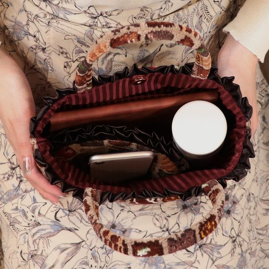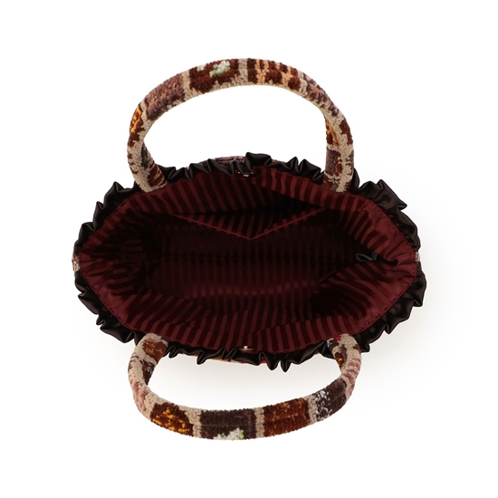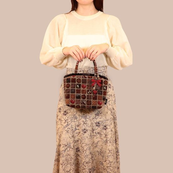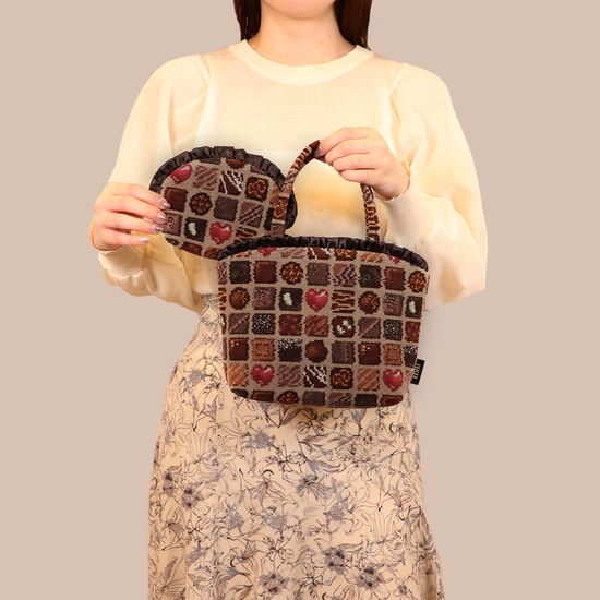 レディライクな雰囲気が漂う『コフレドゥショコラ』のバッグです。開口部にフリルをあしらい、上品さやエレガントさをプラスしました。底にマチがしっかりあるので荷物が整理しやすいのも魅力のひとつ。通勤時のサブバッグとしても、休日のちょっとしたお出かけにもおすすめしたい一品です。