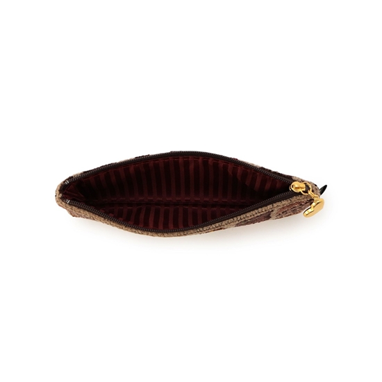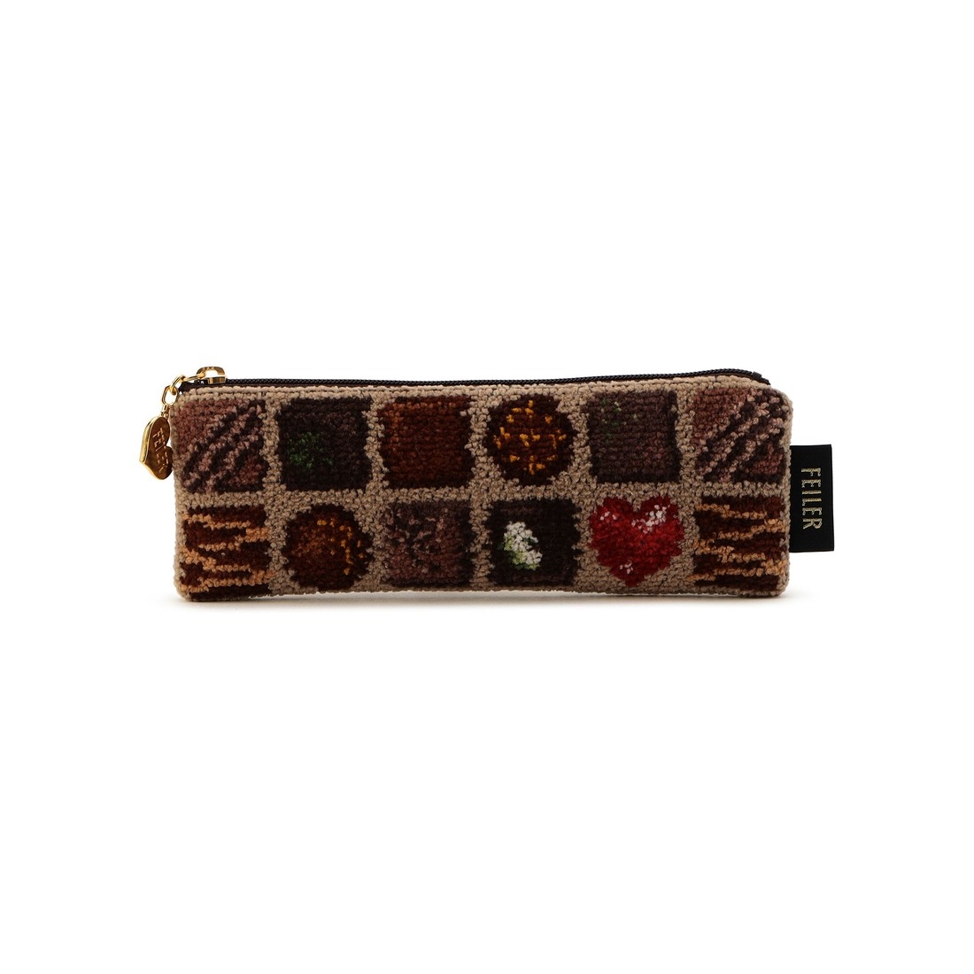 『コフレドゥショコラ』のペンケースです。マチのないスリムなフォルムで、かさばらずに持ち運びができます。ファスナーの引き手には、ゴールドのハート型チャームをあしらいアクセントに。世代を問わず使いやすく、プレゼントにもおすすめのアイテムです。