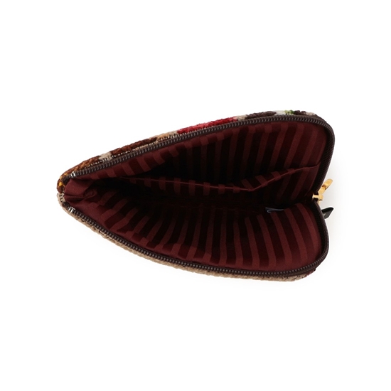 豪華なチョコレートボックスのような柄が目を引く『コフレドゥショコラ』のスクエアポーチです。リップや鍵、目薬などの小物類を、まとめて収納するのにぴったりなサイズ感。内側には仕切りとしても活躍するポケットがあり、細かく仕分けすることも。同柄のハンカチと一緒に、ちょっとしたプレゼントにもおすすめです。