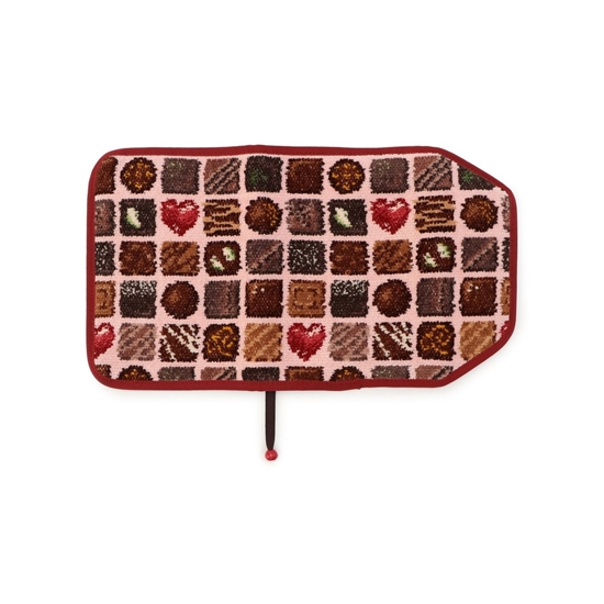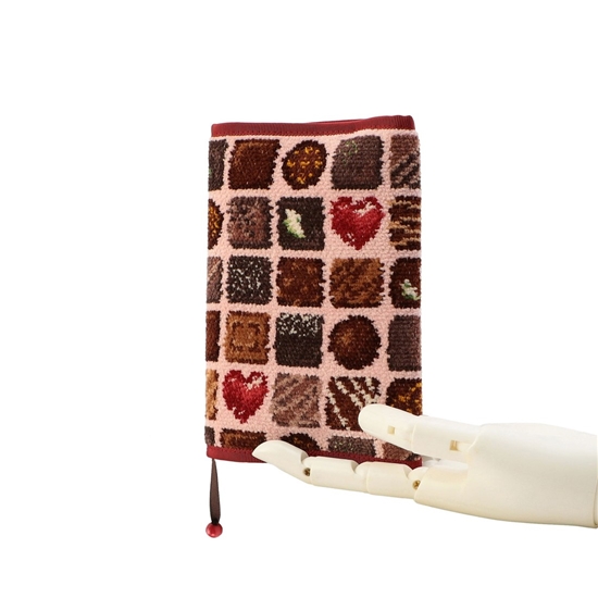 A6サイズが収まる『コフレドゥショコラ』のおしゃれなブックカバーです。バッグに入れて持ち歩くのに便利なサイズ感が魅力的。文庫本はもちろん、メモ帳やスケジュール帳などを入れるのにもおすすめです。同柄のハンカチやポーチと組み合わせて、大切な方へのギフトにいかがでしょうか。