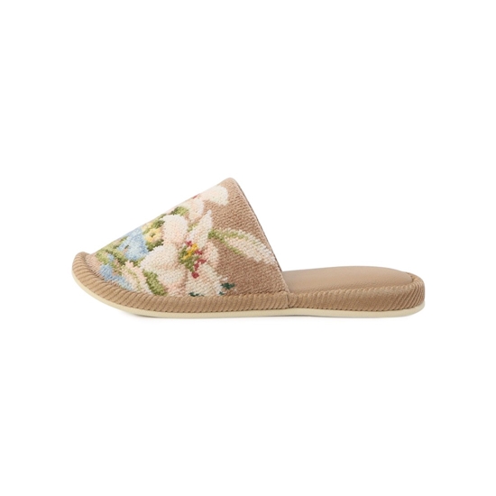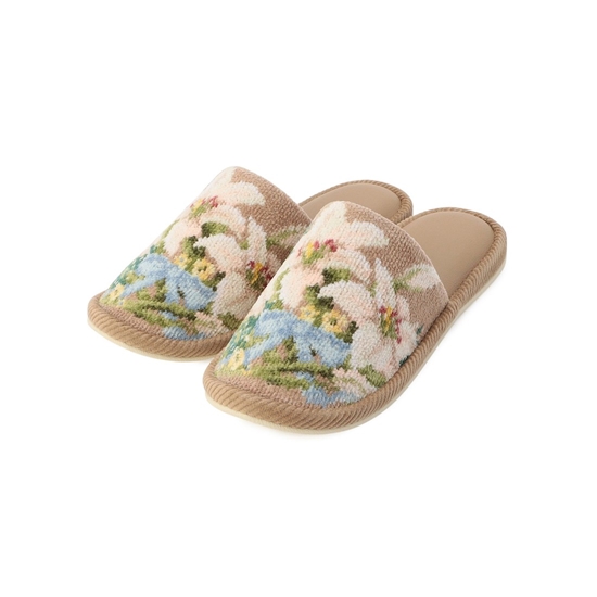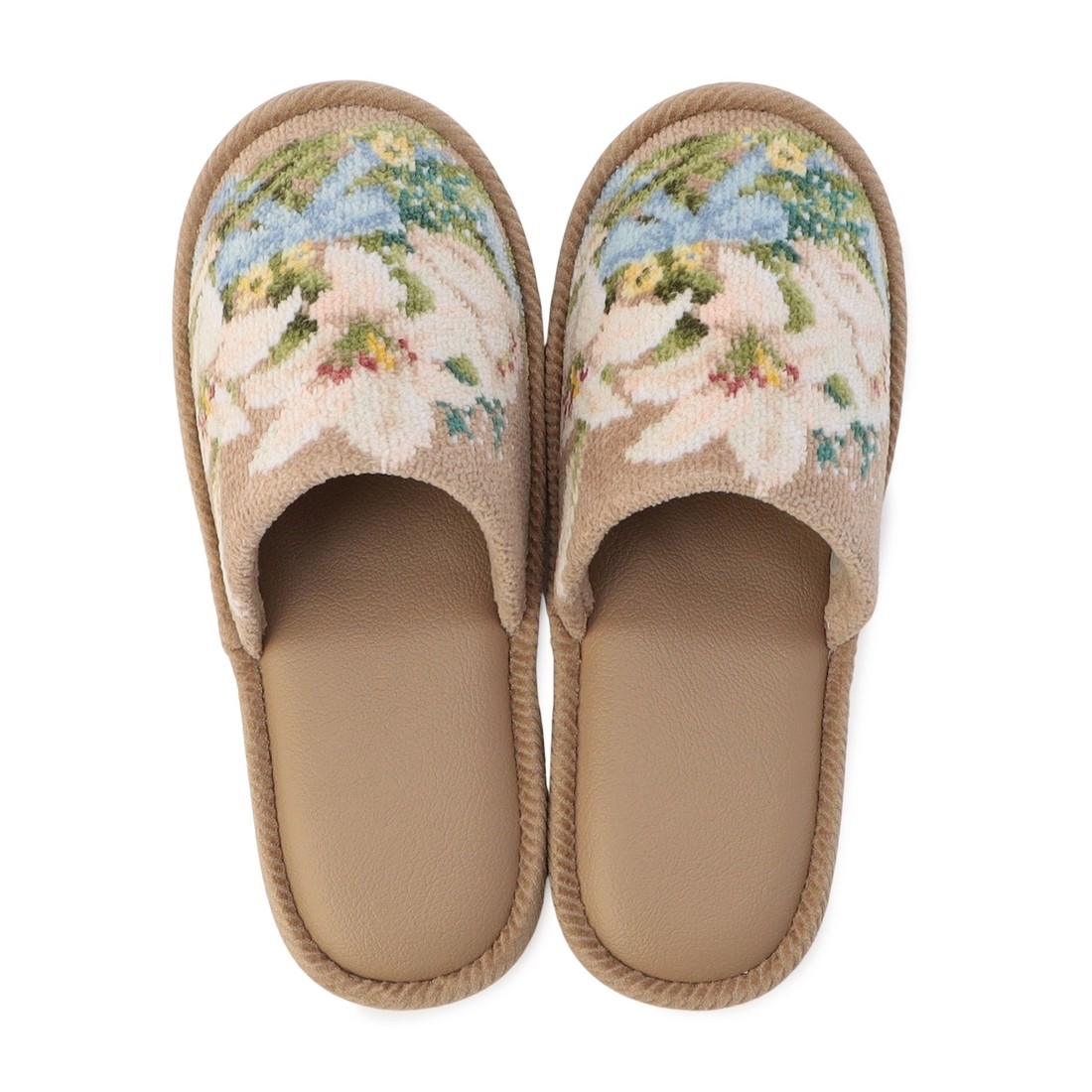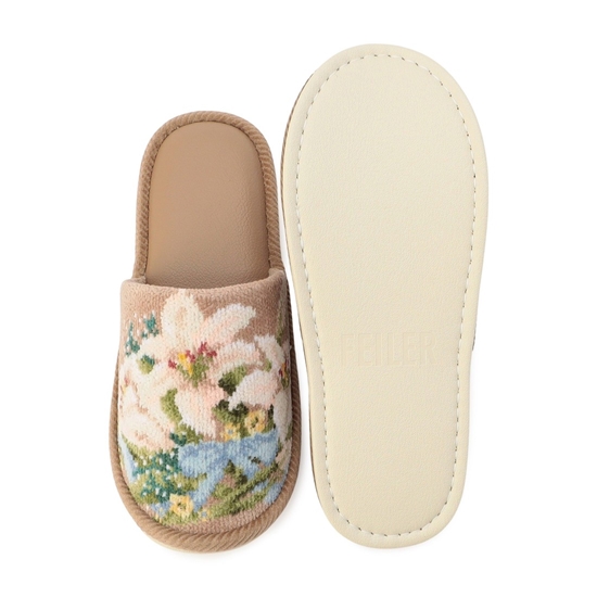 履き心地にこだわった『リリーリリー』のスリッパです。足裏にふんわりとフィットするように、インソールにはやや厚みを持たせました。インソールと同じく、底面も合成皮革素材でお手入れがしやすいのもうれしいポイント。ご自宅での室内履きはもちろん、贈り物にもぴったりなアイテムです。