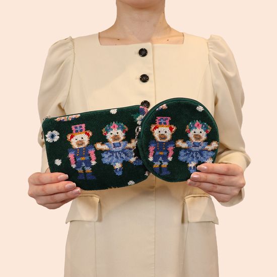 心弾むメロディが今にも聞こえてきそうな『リーベ&リリアザナットクラッカー』のポーチ。有名なクラシックバレエの名作「くるみ割り人形」の世界を、フェイラーらしくアレンジした柄です。小物入れにちょうど良いサイズ感で、バッグの中の小物を整理整頓しながらすっきりと持ち歩くことができます。ホリデーのお出かけのお供にいかがでしょうか。