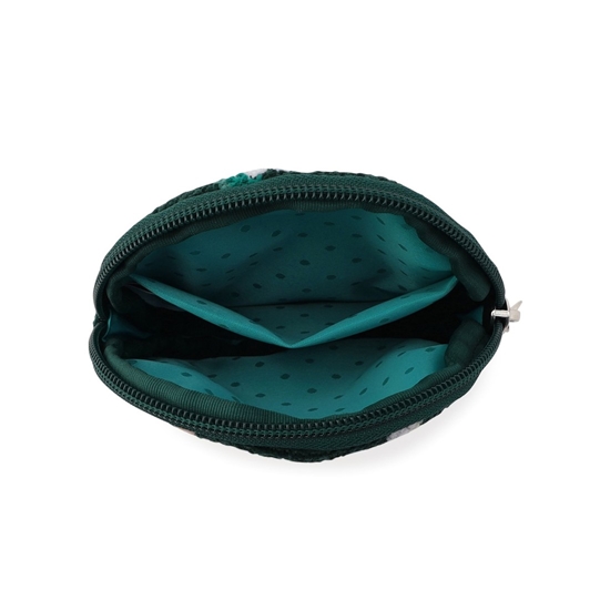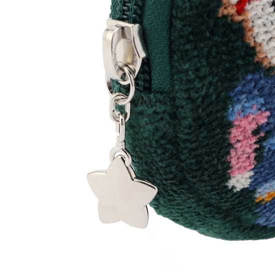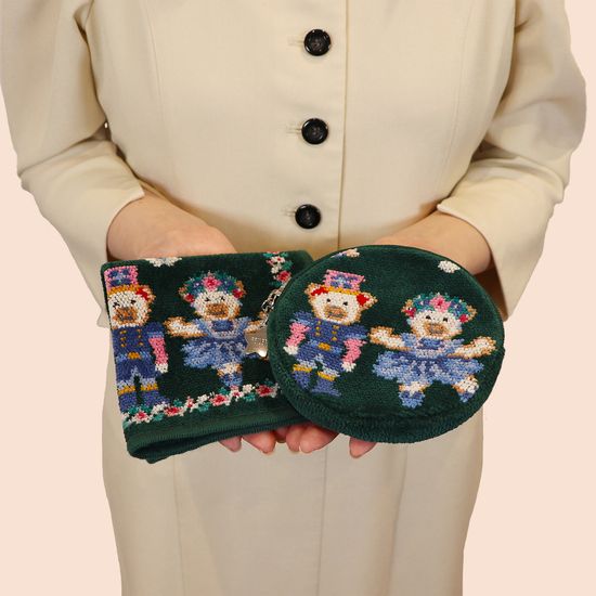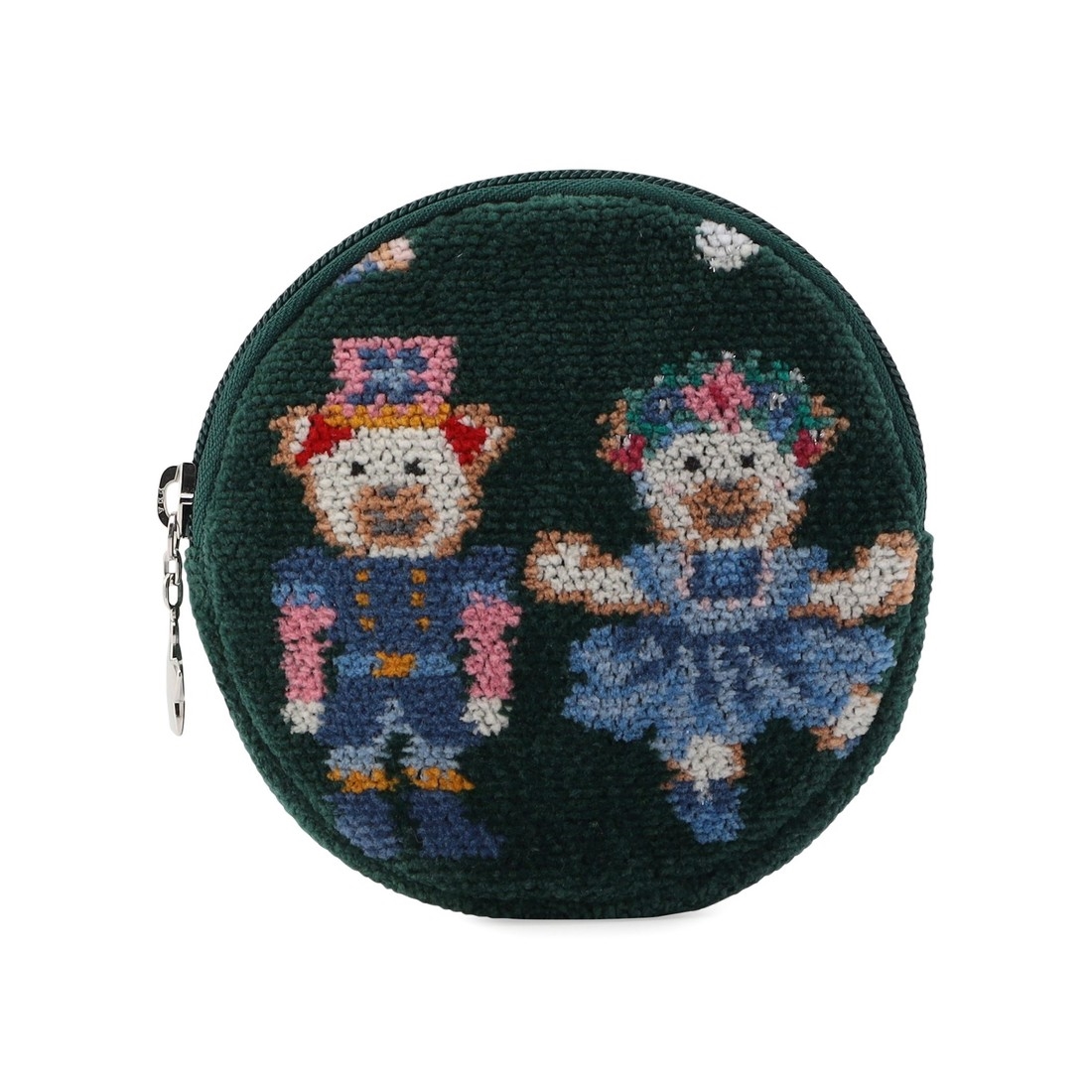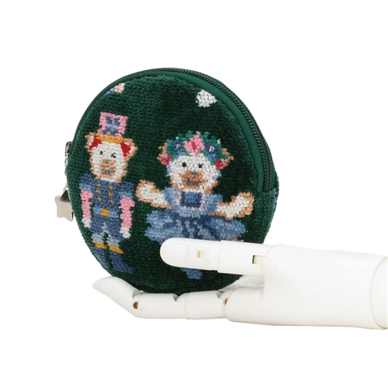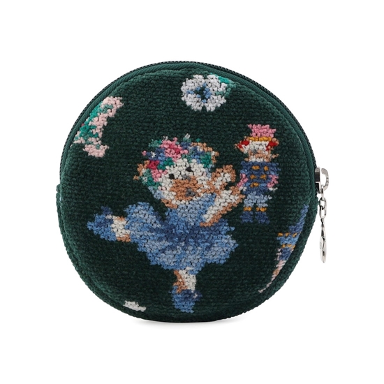 『リーベ&リリアザナットクラッカー』のサークルポーチです。手のひらほどの大きさで、ややマチ幅もあり、持ち運びしやすいのがポイント。内側には仕分けに便利なオープンポケットを備えました。リップやアクセサリー、常備薬などの収納にぴったり。思わず持ち歩きたくなるような、コンパクトで愛らしいアイテムです。