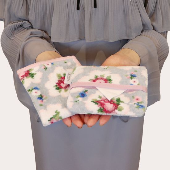 『ローズカンタービレ』のハンカチです。ロマンティックで美しい花模様から、愛や美の象徴として世界中で愛されるバラの花。ピンクやブルーの小花も一緒にちりばめて、穏やかなリズムを奏でるような柄に。幅広い年代の方が使いやすく、特別な日のプチギフトにふさわしい雰囲気の1枚です。