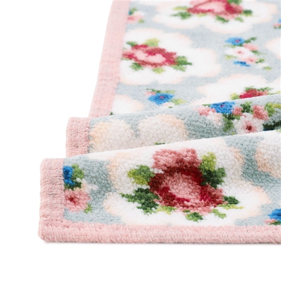 『ローズカンタービレ』のゲストタオルです。ふんわりとした花模様が、まるで優しい旋律を奏でているかのよう。ソフトで吸水性に優れたシュニール織のタオルは、使い心地にも心を奪われます。インテリアやお部屋の雰囲気を損なわず、上品に取り入れられる柄の1枚です。