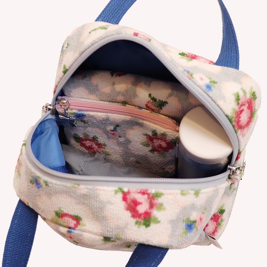様々な装いに合わせやすいトレンドライクな『ローズカンタービレ』のボストンバッグです。底マチを広めにあしらうことで、使いやすさと収納力にこだわりました。内側と背面にポケットがあるので、荷物の整理整頓も簡単。コンパクトなサイズ感で主張しすぎず、ほどよいアクセントとしてコーディネートを引き立てます。