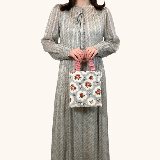 持ち手を通気性のあるサマーツイード生地で仕立てた『ローズカンタービレ』のミニバッグ。ちょっとした手荷物や、お出かけに必要な最小限の荷物を持ち歩くのにぴったりのサイズ感です。軽やかな仕上がりで持ちやすく、コーディネートの程よいアクセントとしてもお楽しみいただけます。ご近所へのお散歩バッグやお子様を連れてのお出かけ、旅行中のサブバッグなどにいかがでしょうか。