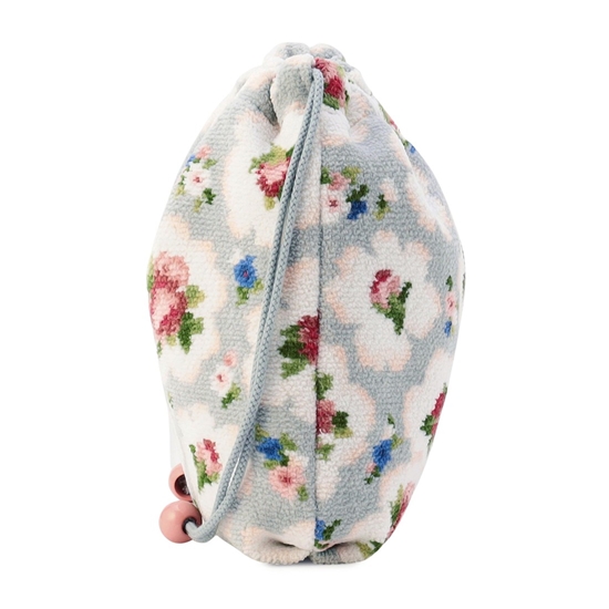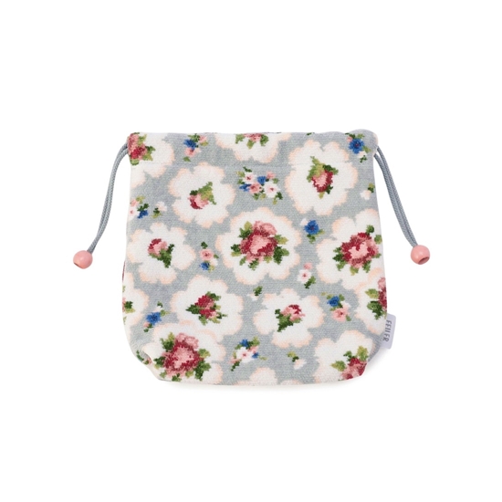 紐が長めでバッグ感覚でもお使いいただける『ローズカンタービレ』の巾着です。普段使いに持ちやすいコンパクトなサイズ感に仕立てました。コスメやモバイルグッズ、エチケットアイテムなどの収納のほか、荷物の整理にも役立ちます。ご自身用としてはもちろん、ギフトにもぜひおすすめしたいアイテムです。