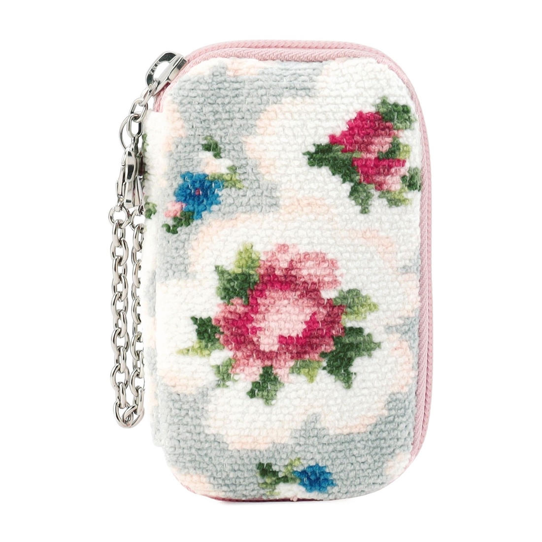 『ローズカンタービレ』のキーポーチです。ポケットを合計3つあしらい、毎日のお出かけに欠かせない鍵のほかに小物も収納可能に。バッグの持ち手に付けられるので、アクセサリー感覚でお使いいただけます。お手持ちのバッグはもちろん、同柄のバッグに付けてお使いただくのもおすすめです。
