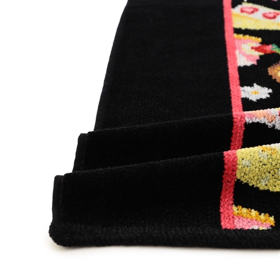 甘いもの好きにはたまらない『ベリーベリーピクニック』のハンドタオルです。ストロベリーやチェリーを贅沢に使用したスウィーツをちりばめて、華やかな表情に織り上げました。シュニール織は優しい肌触りで、吸水性にも優れています。ご自宅での普段使いに、お祝いの贈り物にと幅広く重宝する1枚です。