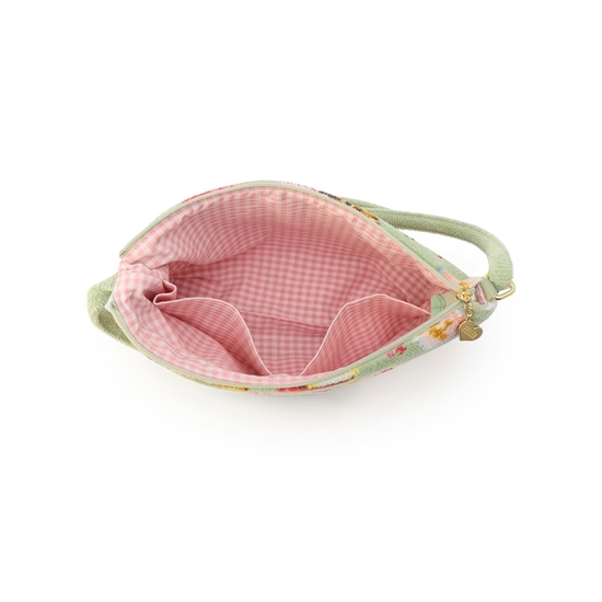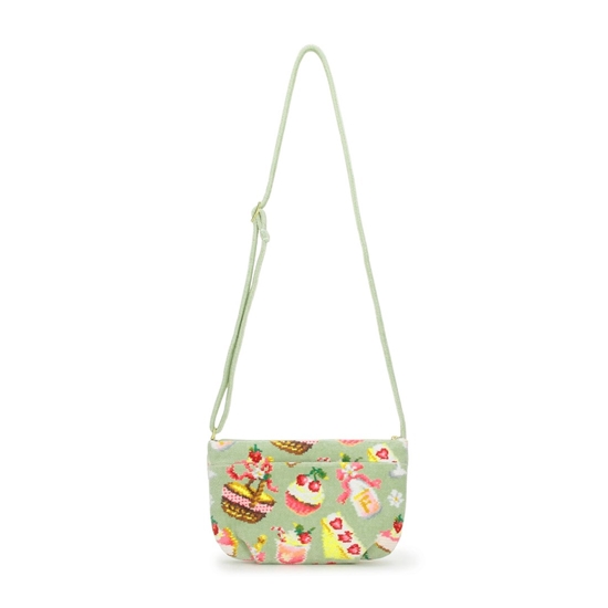 『ベリーベリーピクニック』のショルダーバッグです。小さめのお財布やハンカチなど、外出の時に必要な最低限のアイテムが入る程よいサイズ感。内外で合計3つのポケットを備えて、使いやすさにもこだわりました。手元が空くので普段のお出かけから、旅行先での街歩きにまで幅広く活躍します。