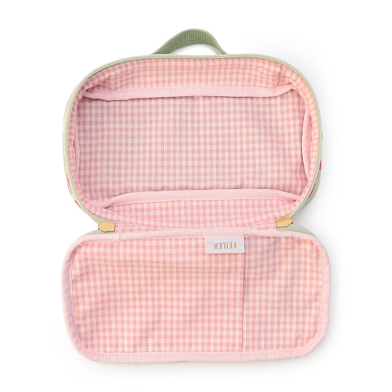 手に取りやすいハンドルをあしらった『ベリーベリーピクニック』のポーチです。ハンドウォッシュ対応で、カトラリーなどの持ち運びにぴったり。オープンポケットが付いて、コスメやモバイルグッズなどの収納にも役立ちます。アイテムを問わず収納できるポーチは、ギフトにも喜ばれる一品です。