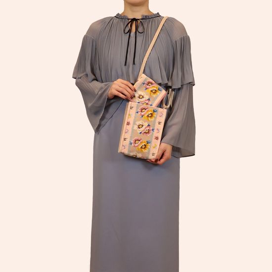 ちょっとしたお出かけから旅行先にも重宝する『アネモネパドドゥ』のショルダーバッグです。必要最低限の持ち物を入れて、移動するのにぴったりなサイズ感に仕立てました。内外にオープンポケットがあるので、スリムながら程よい収納力があります。着こなしのワンポイントにもおすすめしたいアイテムです。