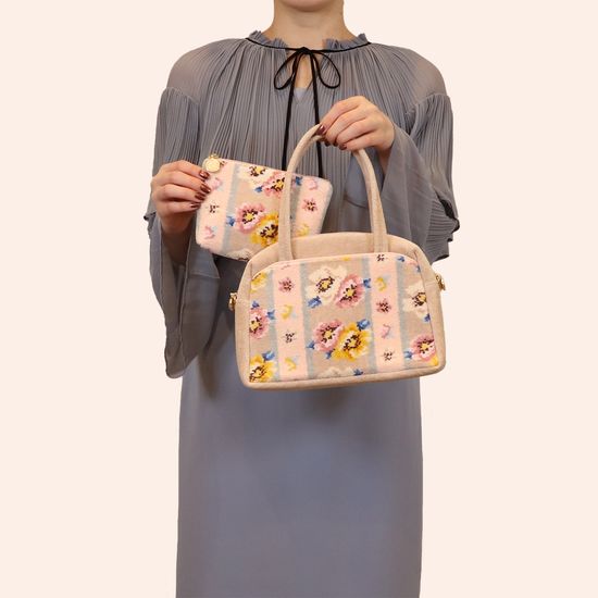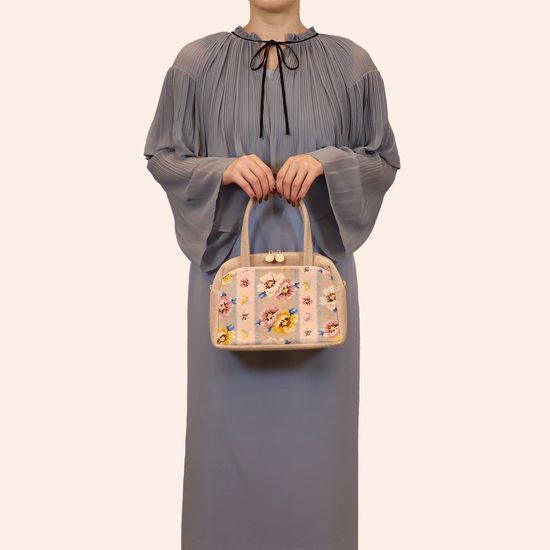 きちんと見えする『アネモネパドドゥ』のボストンバッグです。安定感のあるしっかりとしたフォルムと、収納力のある仕様が魅力的。ハンドル部分は長さを持たせて、肩回りが窮屈になりにくいのもポイントのひとつ。上品ながらも抜け感があり、幅広いシーンにお持ちいただけます。
