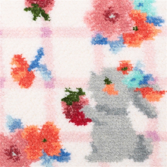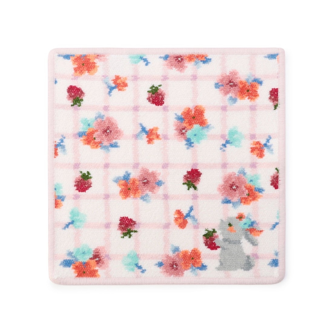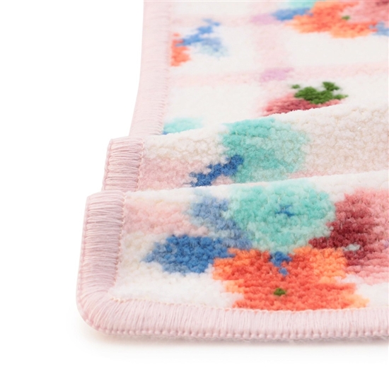 『ブルームブルーム』のハンカチです。これからもずっと、華やかで笑顔いっぱいの毎日を送れますようにとメッセージを込めてデザインしました。かわいらしい小花やイチゴが演出する、おとぎ話のような世界観が魅力的。ながめていると思わずにっこり、笑顔になりそうな愛らしい1枚です。