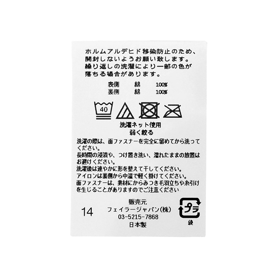 | 素材: | 表側 綿100% / 裏側 綿100% |
