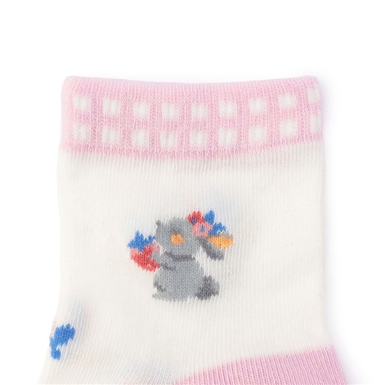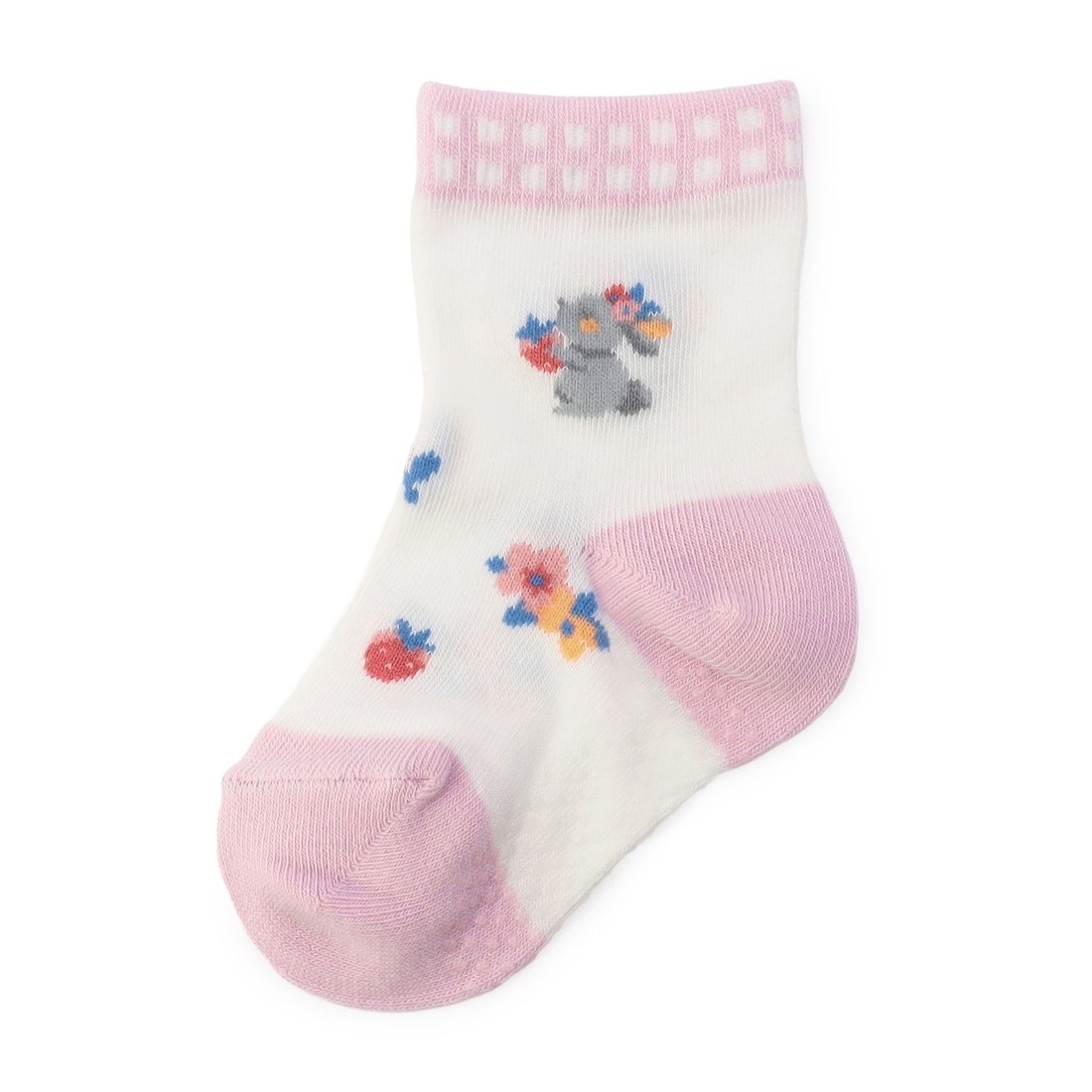 ベビーウェアにさりげないアクセントをそえる『ブルームブルーム』の靴下です。ギンガムチェックの履き口と、幸せそうに眠るかわいいウサギさんのモチーフがポイント。足裏には歩き始めのベビーにも安心で、パパとママもうれしいすべり止め付き。派手過ぎず、幅広いコーディネートとの組み合わせをお楽しみいただけます。