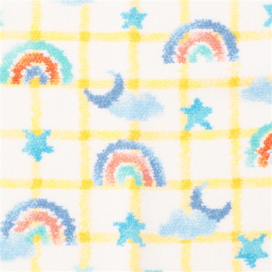 明るく元気なサンシャインイエローに彩られた、夢の中の空をイメージした夢や希望をのせたカラフルな虹やちょこんと顔を出す三日月。あなたの人生がキラキラ輝きますようにと煌めく星に願いを込めて。