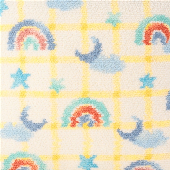 明るく元気なサンシャインイエローに彩られた、夢の中の空をイメージした夢や希望をのせたカラフルな虹やちょこんと顔を出す三日月。あなたの人生がキラキラ輝きますようにと煌めく星に願いを込めて。