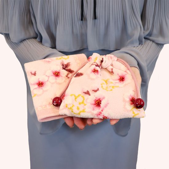 イヤホンやヘアクリップなどの小物をまとめるのに便利な『コイザクラ』のミニ巾着です。毎日気分を上げて愛用できるように明るい色合いで仕上げるなど、カラーリングにもこだわりました。大切な方やお世話になった方への御礼の品に添える、プラスワンアイテムとしてもおすすめです。
