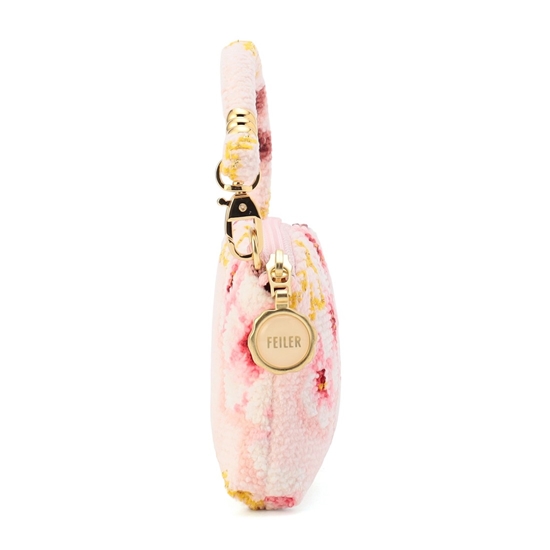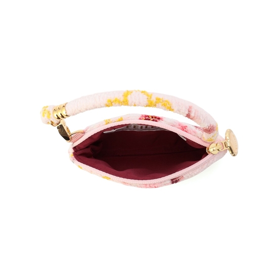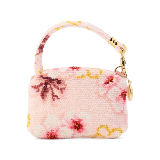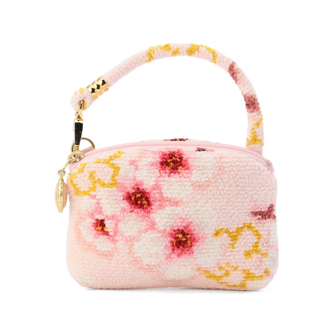 『コイザクラ』のサイドポーチです。目薬やリップ、ご自宅の鍵など、よく使う小物を入れておくのに重宝するサイズ感。ハンドルの片側が取り外しできて、バッグチャームとしても活躍します。いつものバッグに付けたり、ハンカチとセットにしてギフトにもおすすめです。