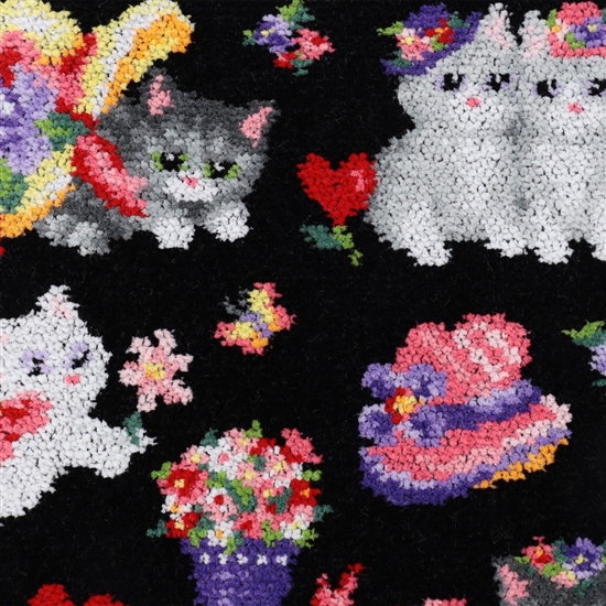 色違いの小さなシャポーをかぶったおしゃれツインズの子猫たち。ゴージャスなお帽子と夢中で遊ぶ黒猫さん。白猫さんは鉢植えのお花にいたずらするつもり?みんなの楽しい気持ちがハートの風船になって、空へと舞い上がります。