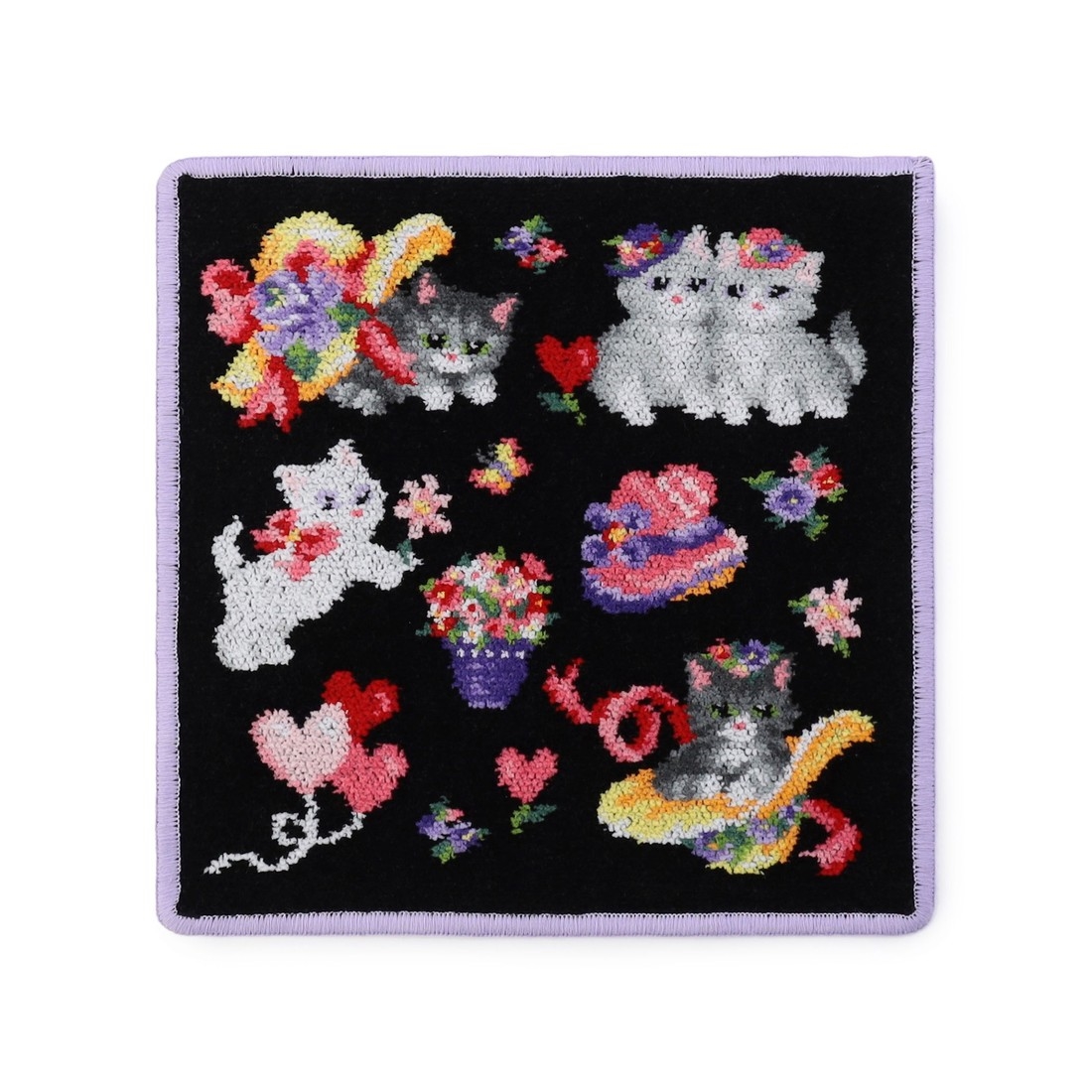 楽しそうに遊ぶ子猫たちがとってもかわいらしい『モンプティシャ』のハンカチです。使う人が思わず笑顔になってしまいそうな、愛らしい柄に仕上げました。ご自身用はもちろん、家族に猫ちゃんがいる方へのプチギフトにもおすすめの1枚です。