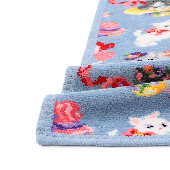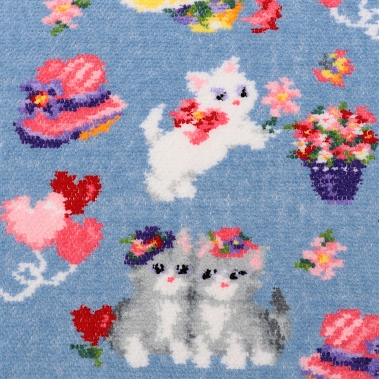ちょっぴりいたずらっ子な子猫たちを描いた『モンプティシャ』のプティバスです。お花にうっとりしたり、ぴったり寄り添ってくつろいだりと、思い思いに過ごしています。明るく楽しい世界観を演出する、色彩豊かなカラーリングも魅力的。ベビーのおくるみとしてはもちろんのこと、キッズのお昼寝用肌掛けや、大人のひざ掛けとしても活躍します。