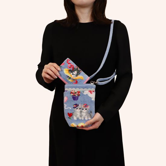 おませな子猫たちがキュートな『モンプティシャ』のミニショルダーバッグです。スマートフォンやミニウォレットなど、お出かけに必要な最低限のアイテムがすっきりと収まります。背面にはポケットがあり、ちょっとした小物を入れるのに便利です。ショルダーは取り外しが可能で、大きめのポーチとしてもお使いいただけます。