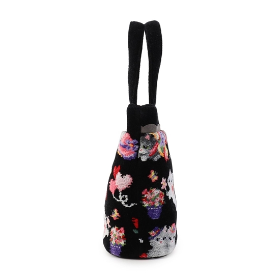 眺めているだけで毎日が明るくハッピーになれそうな『モンプティシャ』のバッグ。楕円形の底は、コンパクトながら見た目以上にたっぷりと収納できます。小物をすぐに取り出せる背面ポケットや、マグネット式の開口部など使いやすさにもこだわりました。ちょっとしたお出かけにおすすめしたい便利な一品です。