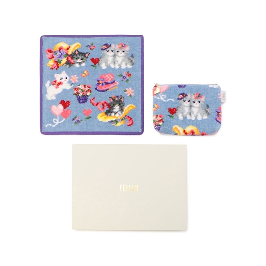 おしゃれにおめかしして戯れる姿がたまらない『モンプティシャ』のハンカチ&ポーチセットです。身だしなみに欠かせないハンカチと、小物収納からバッグの中の整理整頓にも活躍するポーチを組み合わせました。ピンクのリボンが愛らしい、FEILERオリジナルBOX入りで、そのままお相手の方にお渡しいただけます。ご家族やご友人にはもちろん、日頃お世話になっている方へのギフトにいかがでしょうか。