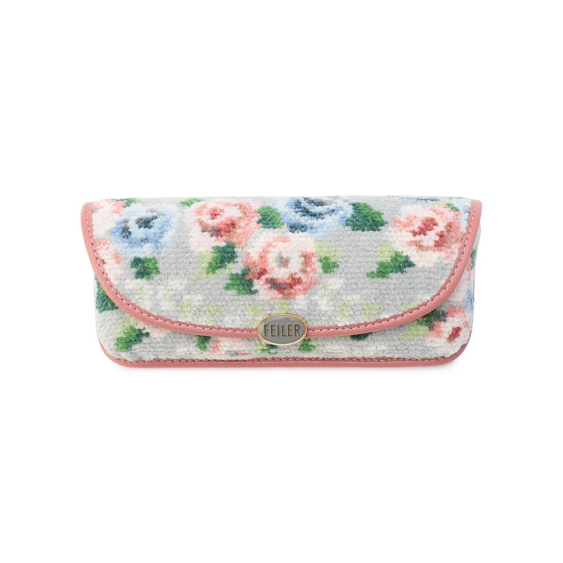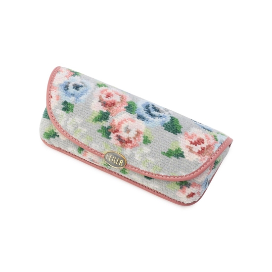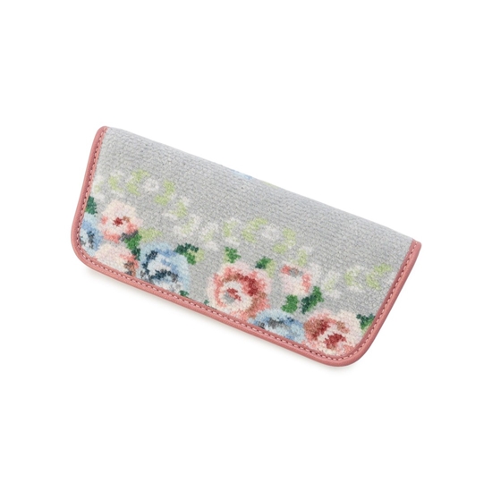 『ノスタルジックノート』の眼鏡ケースです。淡いグレーと優しいピンクを中心とした、繊細なカラーリングが魅力的。薔薇と同じカラーのパイピングをあしらうことで、落ち着いた雰囲気の中に、さりげない甘さをプラスしました。マグネット仕様でスムーズに開閉可能。軽くて持ち運びしやすく、ギフトにもぴったりなアイテムです。