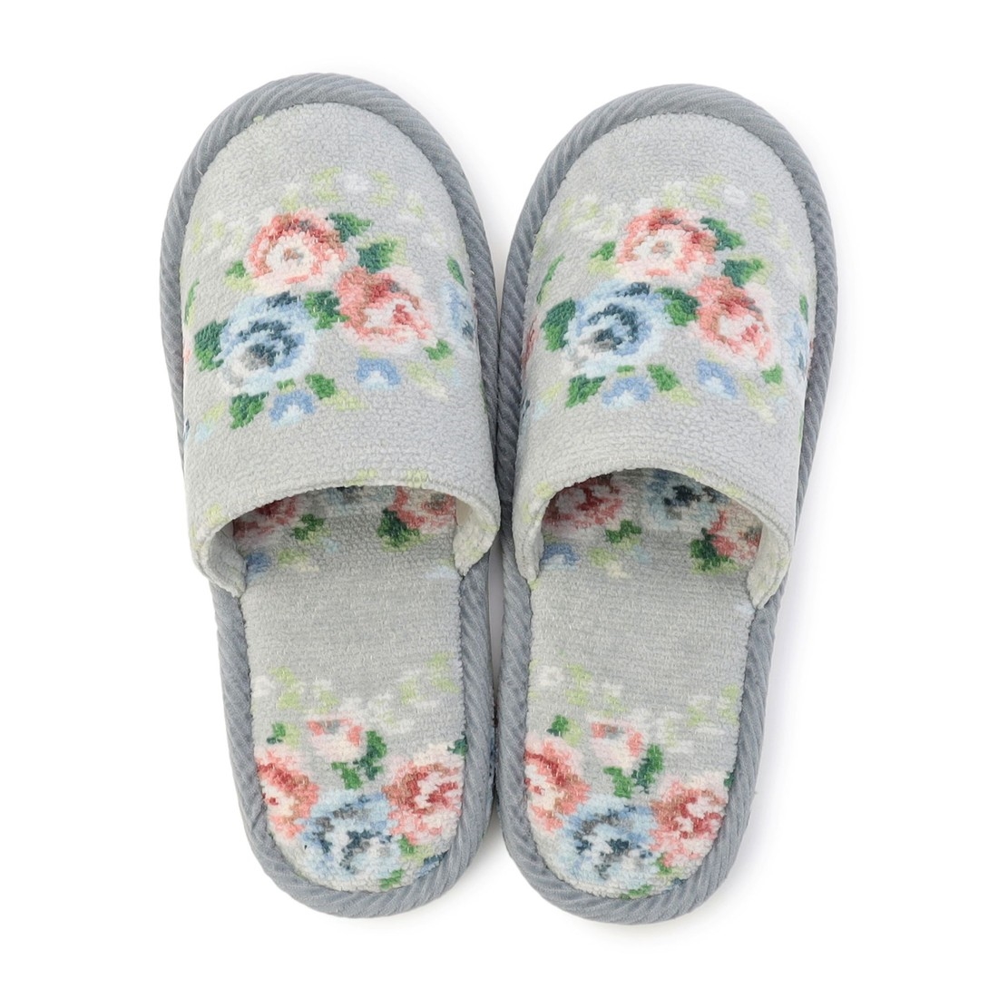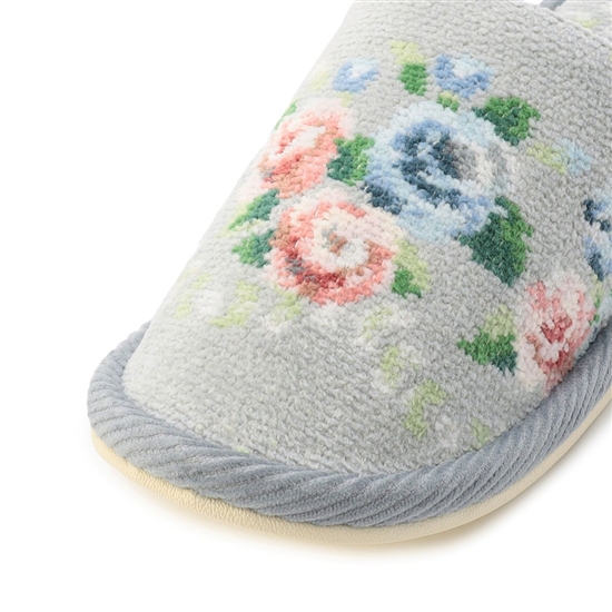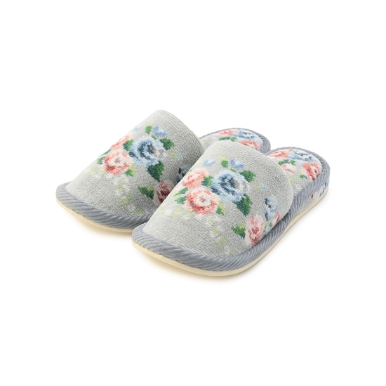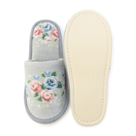 足裏や甲に当たる部分もシュニール織で仕立てた『ノスタルジックノート』のスリッパです。素足でもべたつきにくく、履きやすいのがポイント。やわらかくフィットしつつ足冷え防止にも役立ちます。ご自身用としても、来客用に揃えておくのにもおすすめです。