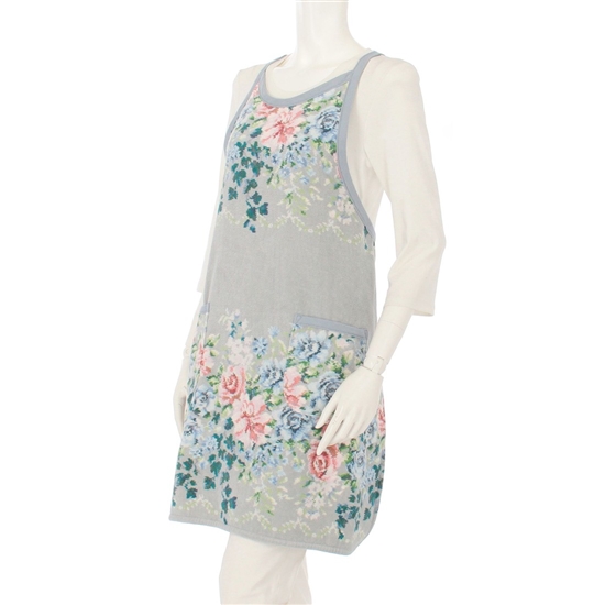 表情豊かな薔薇が視線を集める『ノスタルジックノート』のエプロン。使う方の年代を問わない美しい柄と、優れた吸水性を兼ね備えた一品です。両サイドには、家事の途中で小物を入れるのにちょうど良いオープンポケット付き。ご自身へのご褒美に、感謝の気持ちを込めたギフトとして、お世話になった方へ贈るのにもおすすめです。