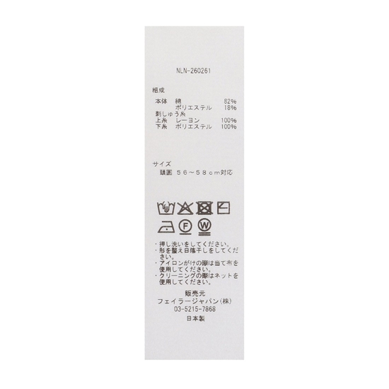 | 素材: | 本体 綿82%、ポリエステル18% / 刺しゅう糸 上糸 レーヨン100%、下糸 ポリエステル100% |