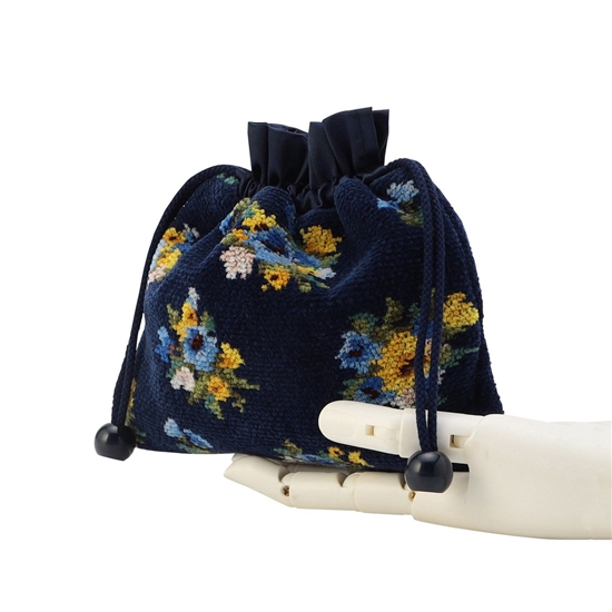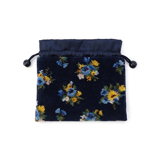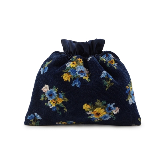 年代問わずお使いいただける『ブラウローゼン』の巾着です。開口部と裏地を艶やかなサテン生地で仕立て、上品なかわいらしさを演出しました。お直し用コスメやモバイルグッズなど、お出かけの必需品をまとめるのにぴったりなサイズ感。バッグの中で見失いがちな貴重品の整理など、さまざまな用途で役立つアイテムです。