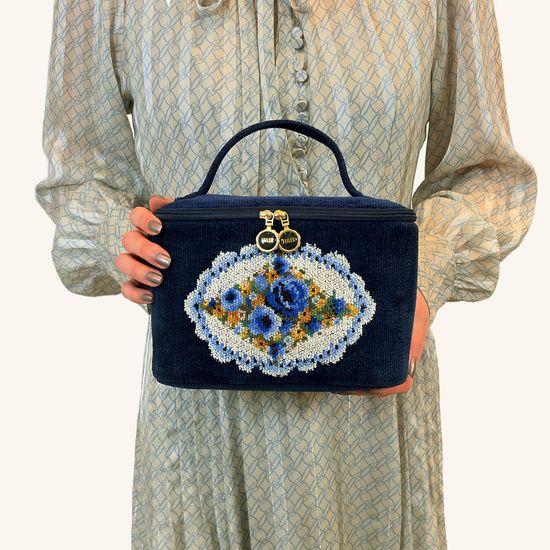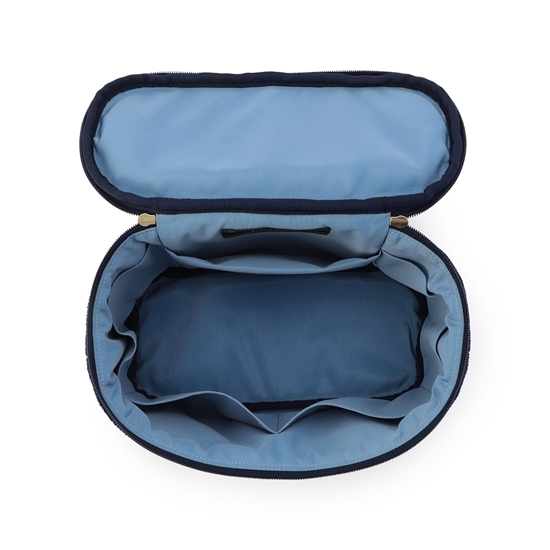 『ブラウローゼン』のバニティポーチです。開口部がぐるりと大きく開くダブルファスナー仕様に、お手持ちのショルダーを装着できるDカンなど、細部にまでこだわって仕上げました。内側には幅が異なるポケットを5つ備えており、見た目以上にたっぷりと収納可能。お気に入りのショルダーストラップを取り付けていただくと、ミニバッグとしてパーティーなどにもお使いいただけます。
